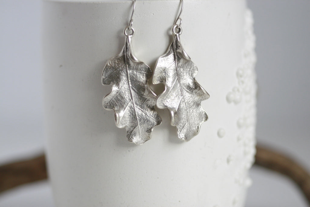 Embrace timeless nature-inspired beauty with these exquisite oak leaf earrings. Crafted with intricate detail and finished in antique silver plating, they capture the delicate elegance of falling leaves. Lightweight and versatile, they add a touch of vintage charm to any outfit — perfect for nature lovers and those who appreciate classic, handcrafted design.