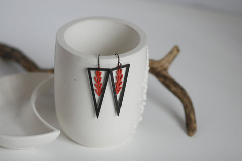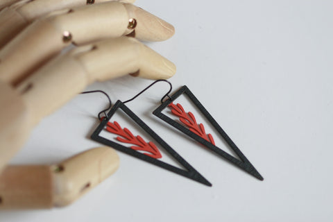 These earrings feature intricate designs inspired by coral formations and sea motifs, crafted in a stunning coral hue complemented by black. Embrace the essence of the sea with these captivating earrings, perfect for adding a pop of color and a hint of coastal charm to any ensemble.